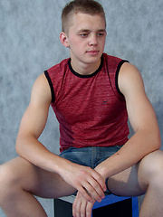 Blond gay boy Kenny self-fingering his tight ass